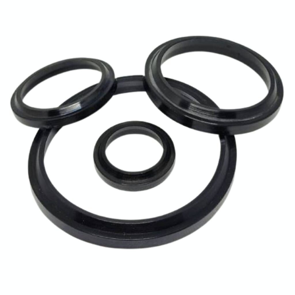 Sellos de labio múltiple para pistones y émbolos. Aseguran un sellado eficiente en equipos hidráulicos de trabajo pesado.